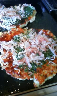 自分で焼くのが面白い。あと、もんじゃも注文して二人で半分コしました。