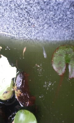 体長1センチほどの数匹を軒下の睡蓮鉢から外のひょうたん池へ。